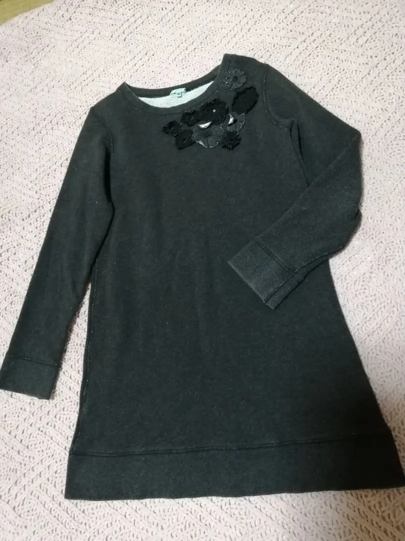 トッカtocca140ブラックグレー長袖ワンピース花ビジュー
