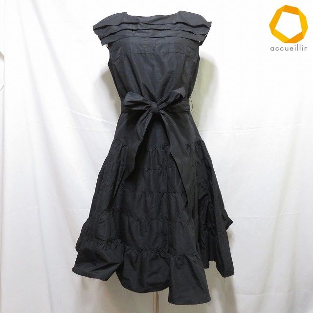 #anc トゥービーシック TO BE CHIC ワンピース 40 黒 腰紐 ノースリーブ フレアスカート レディース [1000959]