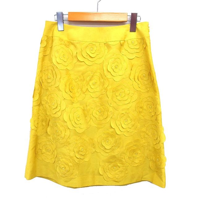 トゥービーシック TO BE CHIC フラワーモチーフ スカート フレア ひざ丈 サイドジップ 42 黄 イエロー /NT13