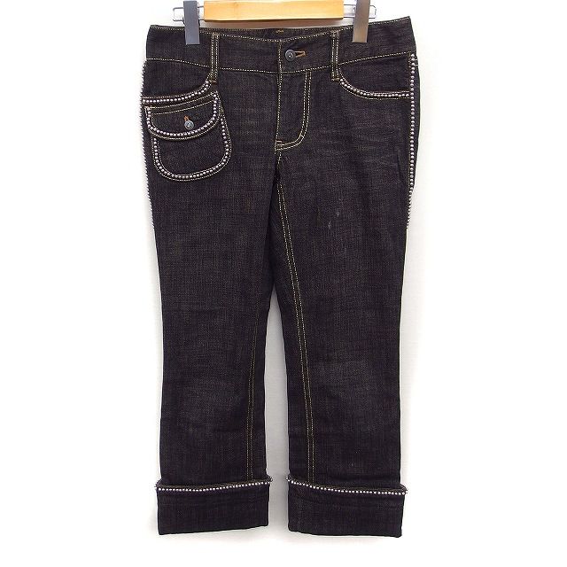 トゥービーシック TO BE CHIC デニム ジーンズ クロップド パンツ パール装飾 40 ブラック 黒 /FT6