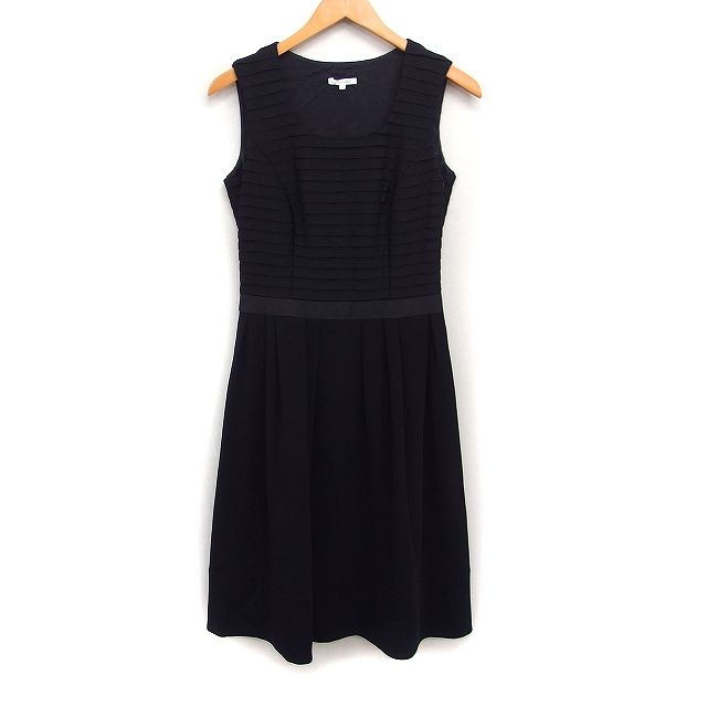 トゥービーシック TO BE CHIC タック フレア ワンピース ノースリーブ ロング 無地 40 ブラック 黒 /FT9