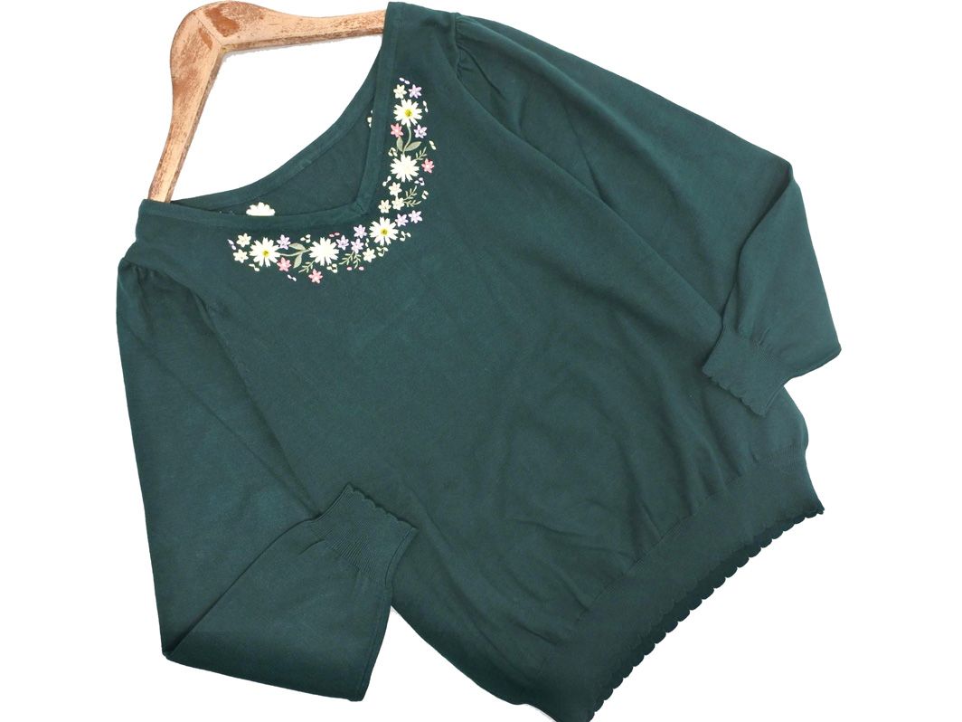 新品 Couture brooch クチュールブローチ 刺繍 Vネック ニット セーター size40/緑 ■◇ レディース
