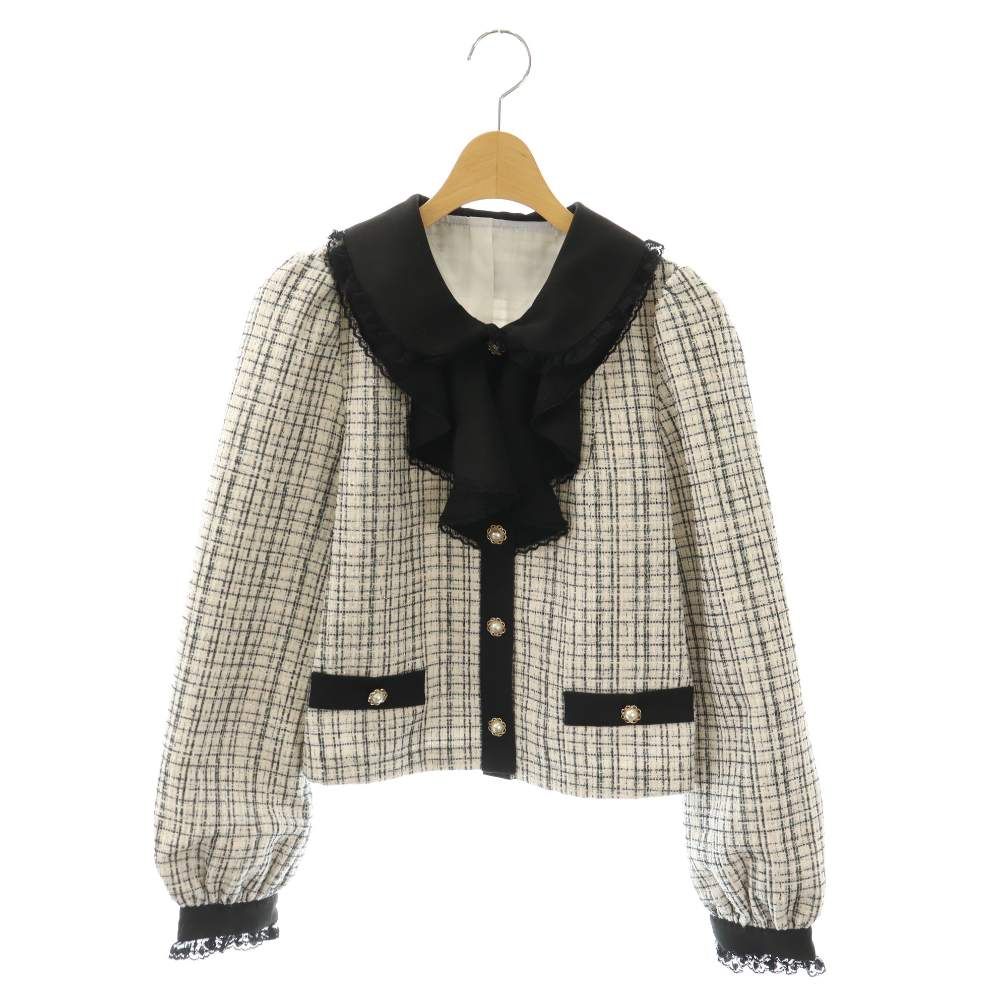 シークレットハニー Secret Honey ツイードジャケット フリルレースカラー フェイクパール 2 黒 白 /CX ■ECD003