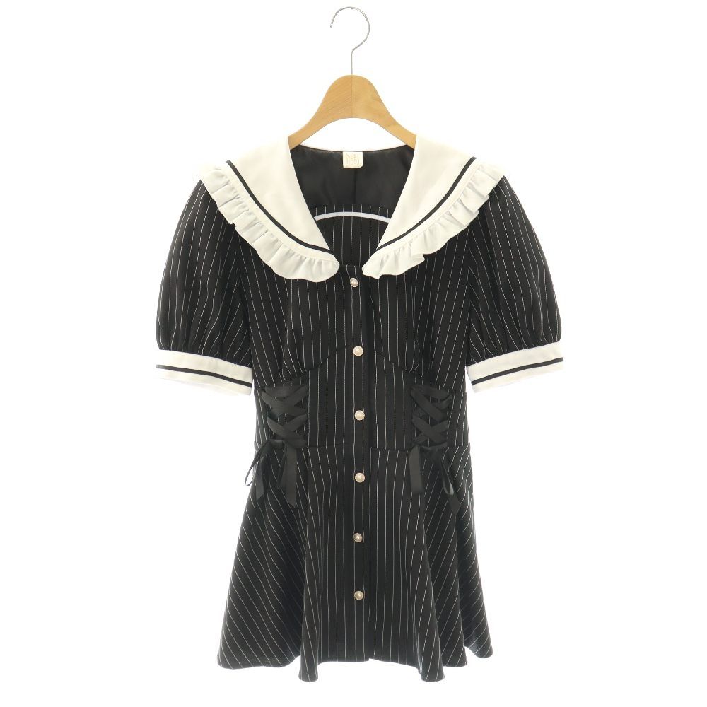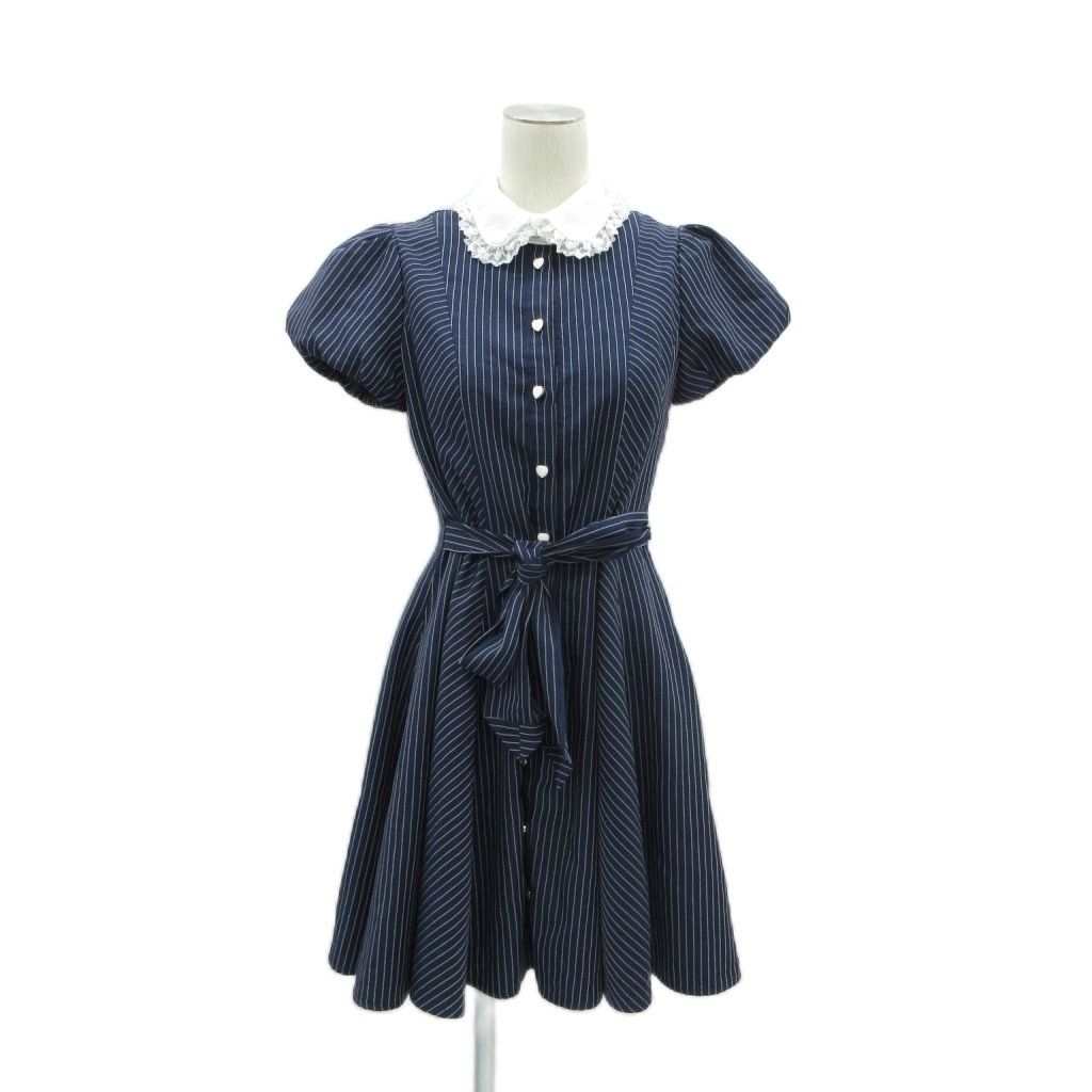 シークレットハニー Secret Honey ワンピース 2 紺 ネイビー ストライプ柄 丸襟 半袖 ひざ丈 /HO58 ■ECD001