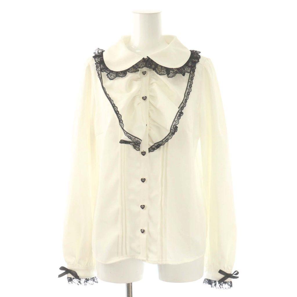 シークレットハニー Secret Honey フリルレースブラウス シャツ ハートリボンボタン 2 白 黒 /CX ■ECD003