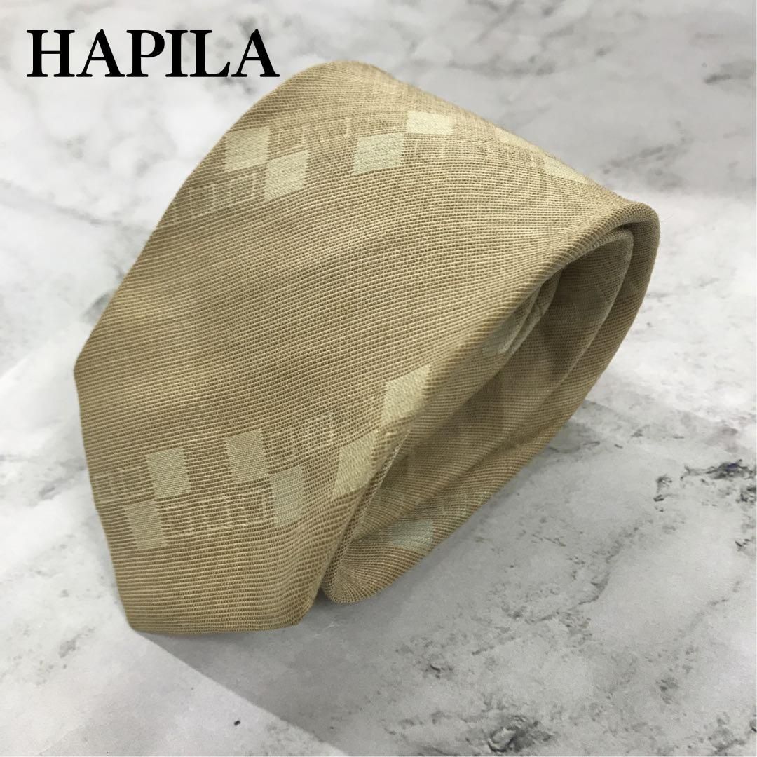 ハピラ ネクタイ ベージュ 菱形 パターン柄 絹 シルク【n1017】