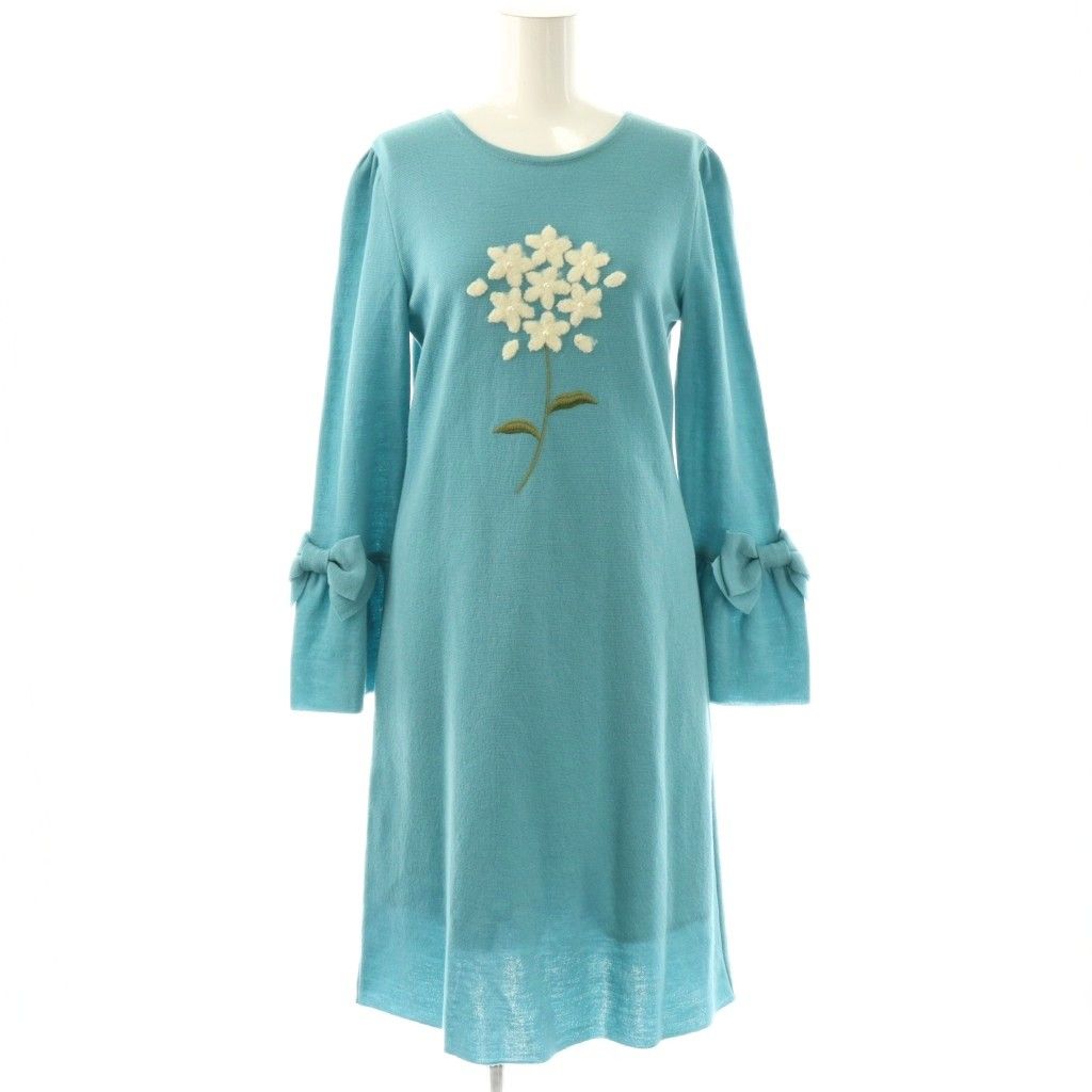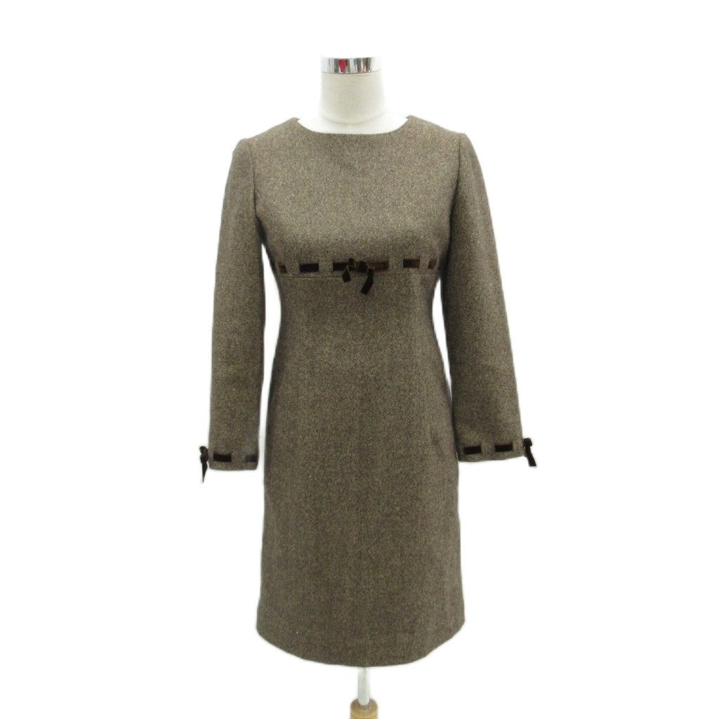 【クリーニング済美品】エムズグレイシー ネイビー リボン付きワンピース 40