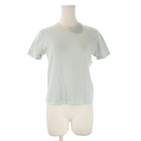 ピッコーネ PICONE ニット セーター ウール 38 青 ブルー サックス 半袖 ラウンドネック パール装飾 /CK44 ■ECD003