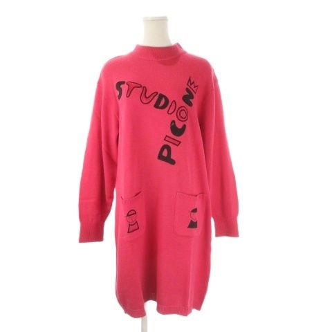 ピッコーネ PICONE ニットワンピース 38 ピンク ローズ ロゴプリント キャラクタープリント 長袖 /CK43 ■ECD003