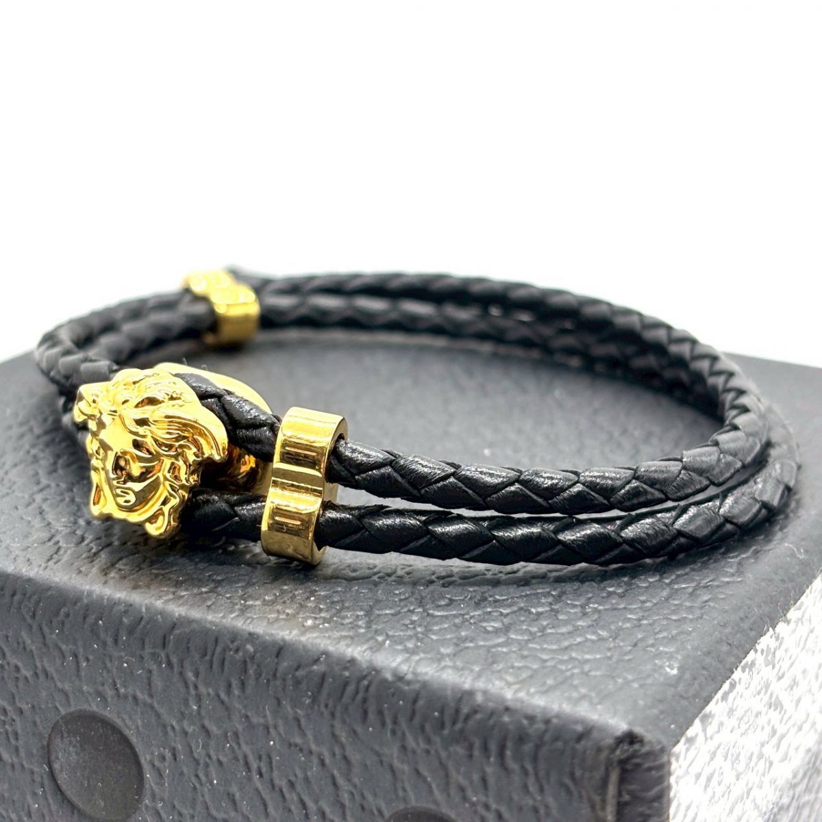 ヴェルサーチ 黒レザー ハンドバッグ ゴールドチェーン