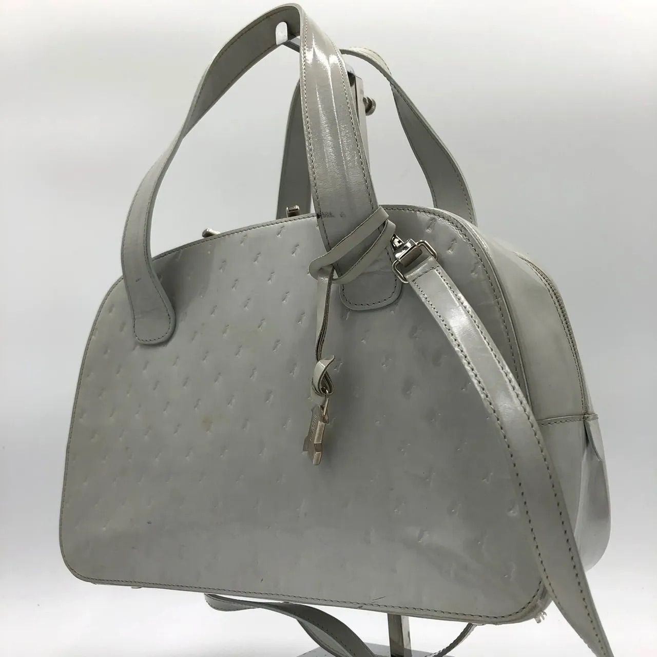 ゴールドファイル 2WAY ショルダーバッグ 型押し レザー グレー 中古