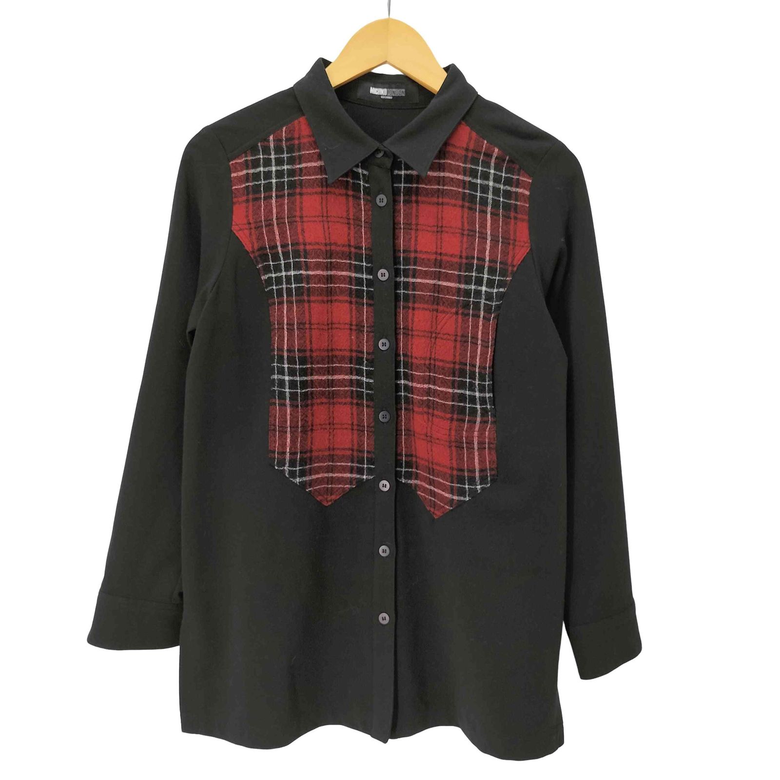 ミチコロンドン MICHIKO LONDON チェック パッチ レーヨン混シャツ 背面ベルト レディース JPN:11号
