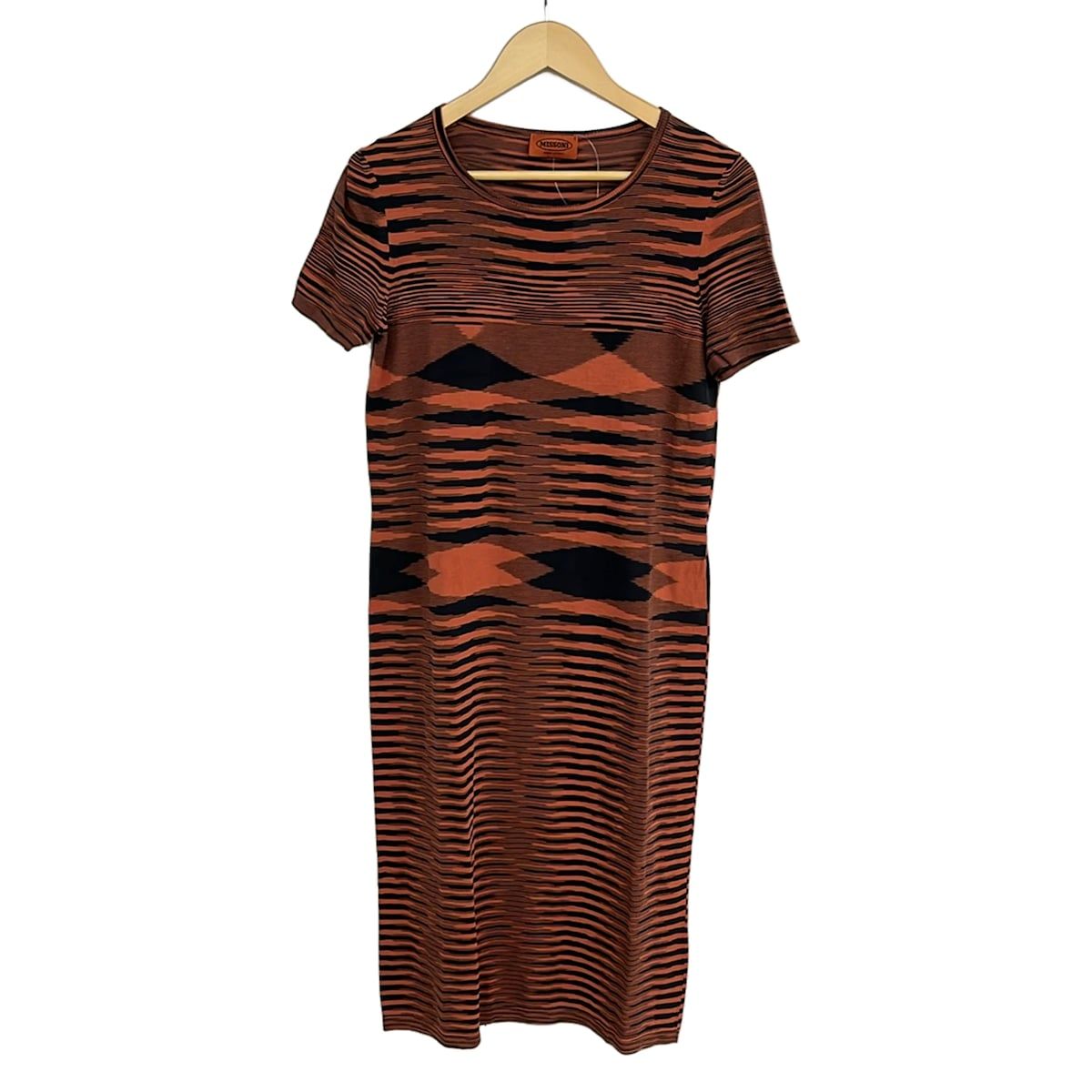 MISSONI(ミッソーニ) ワンピース サイズ31 レディース - オレンジ×黒 半袖/ニットワンピース