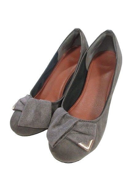 サボイ SAVOY パンプス リボン モチーフ ウェッジソール スウェード サイズ 24 ㎝ グレー QQQ