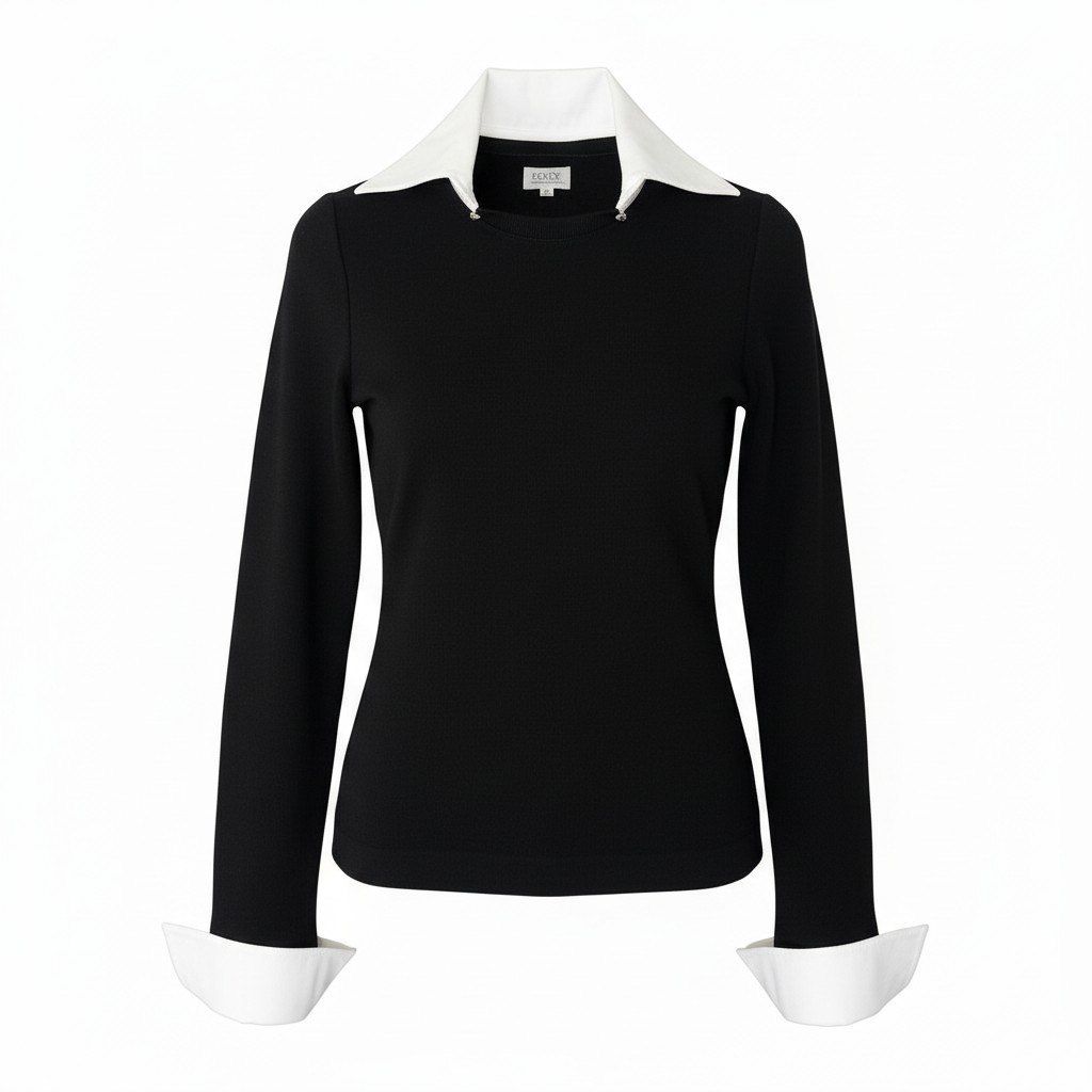 64d15 FOXEY BOUTIQUE フォクシー ブティック ロングスリーブ ニットセーター ハイゲージニット 白襟 カフス付 取り外し可 サイズ38 ブラック ウール100% レディース 女性用u02t