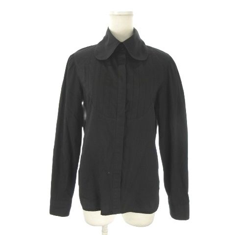 ボシュプルメット bortsprungt. シャツ ブラウス 黒 ブラック ラウンドカラー ピンタック 長袖 /AO22 ■GY70