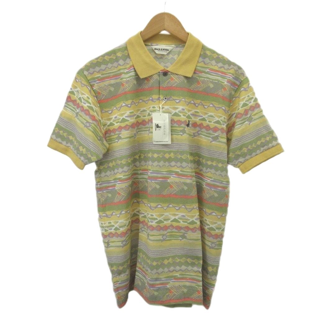 【美品】Black&White ゴルフ 半袖 ポロシャツ L 総柄 ハーフジップ