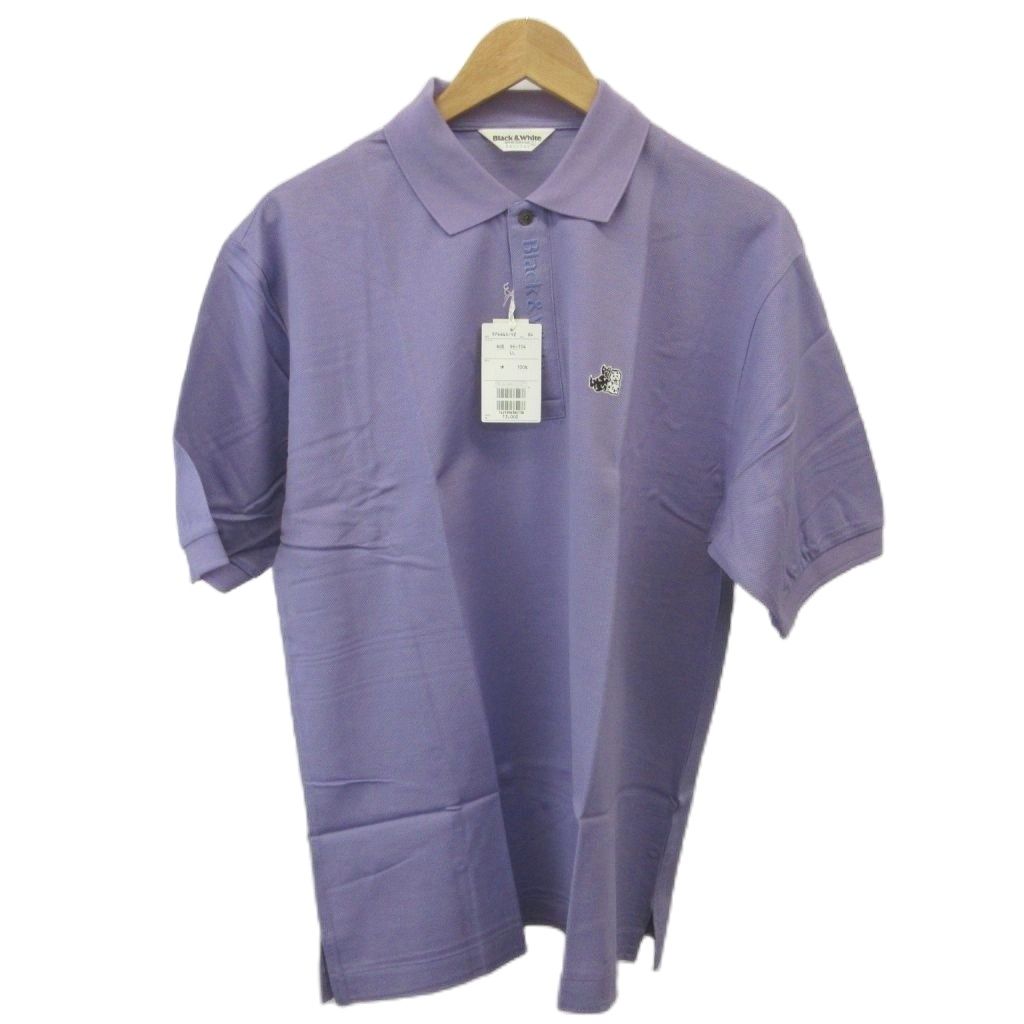 ブラック&ホワイト ポロシャツ LL パープル 紫 半袖 襟付き ロゴ刺繍 /AY ■ECB003