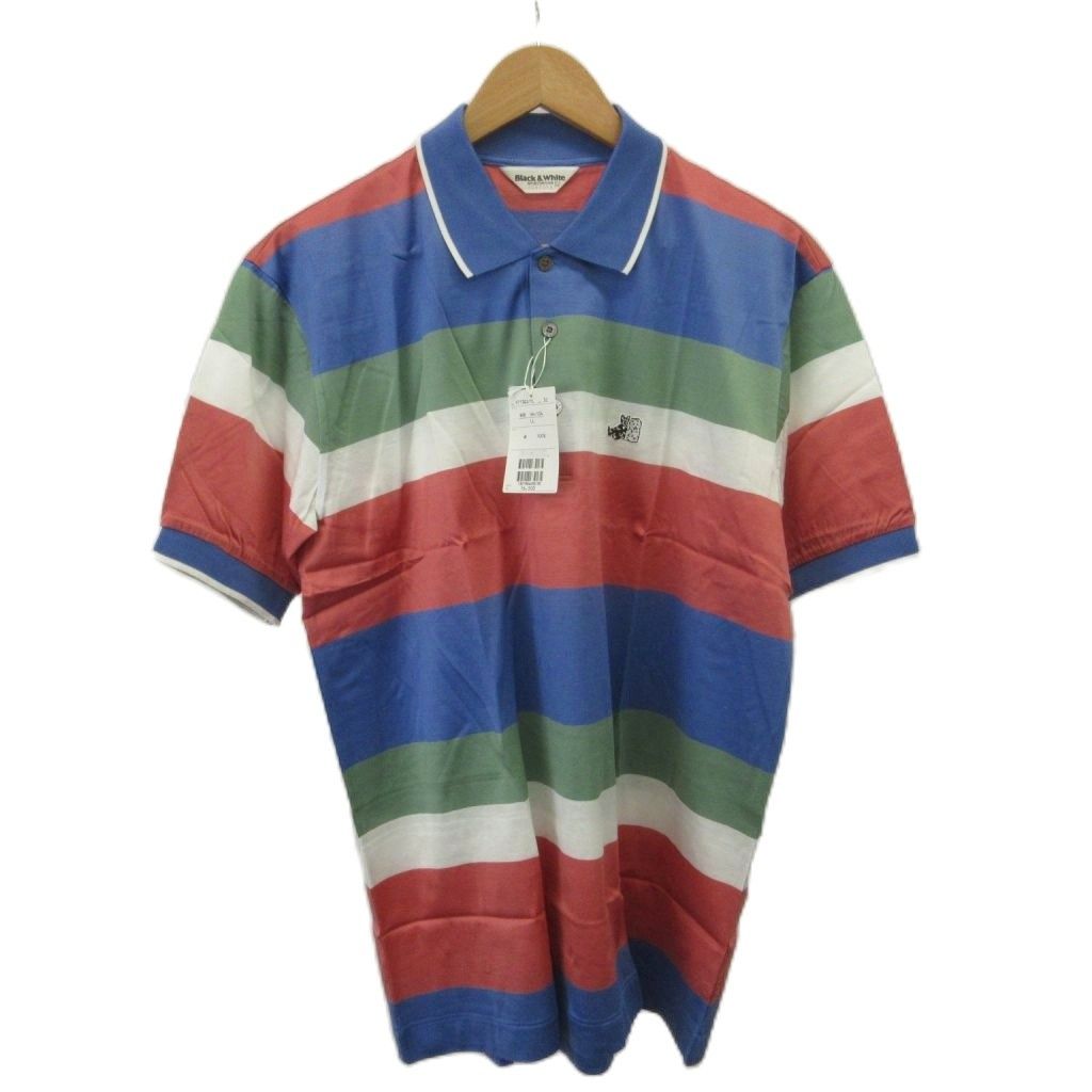ブラック&ホワイトポロシャツ LL マルチカラー ストライプ柄 襟付き 半袖 /AY ■ECB003