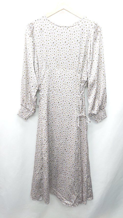 ◇ Cheek チーク 花柄 長袖 膝下丈 ワンピース サイズM ブルー系 レディース E 【1408060011896】