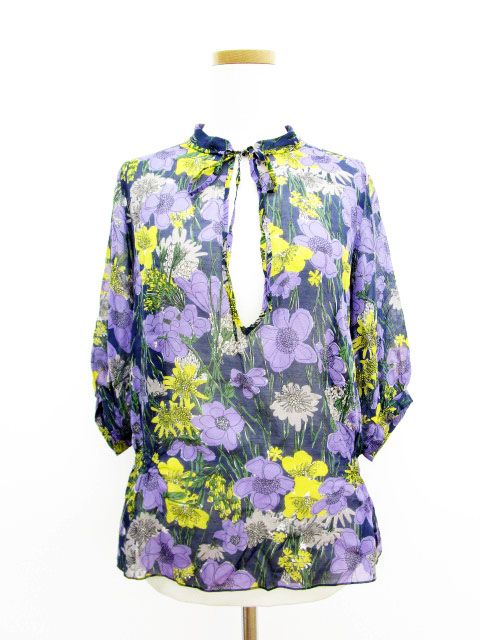 アナディス dun a dix カットソー ブラウス スキッパー 七分袖 シースルー 絹 シルク 花柄 38 紫 パープル