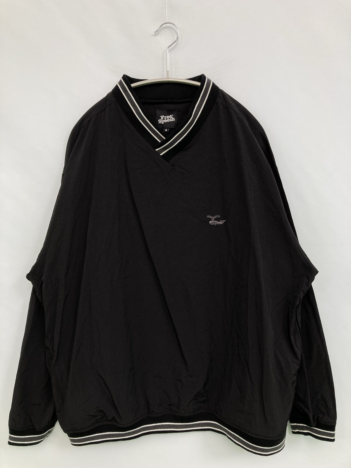 Free speech フリースピーチ ナイロンジャケット M ブラック 無地 ワンポイント ライン柄 フードなし