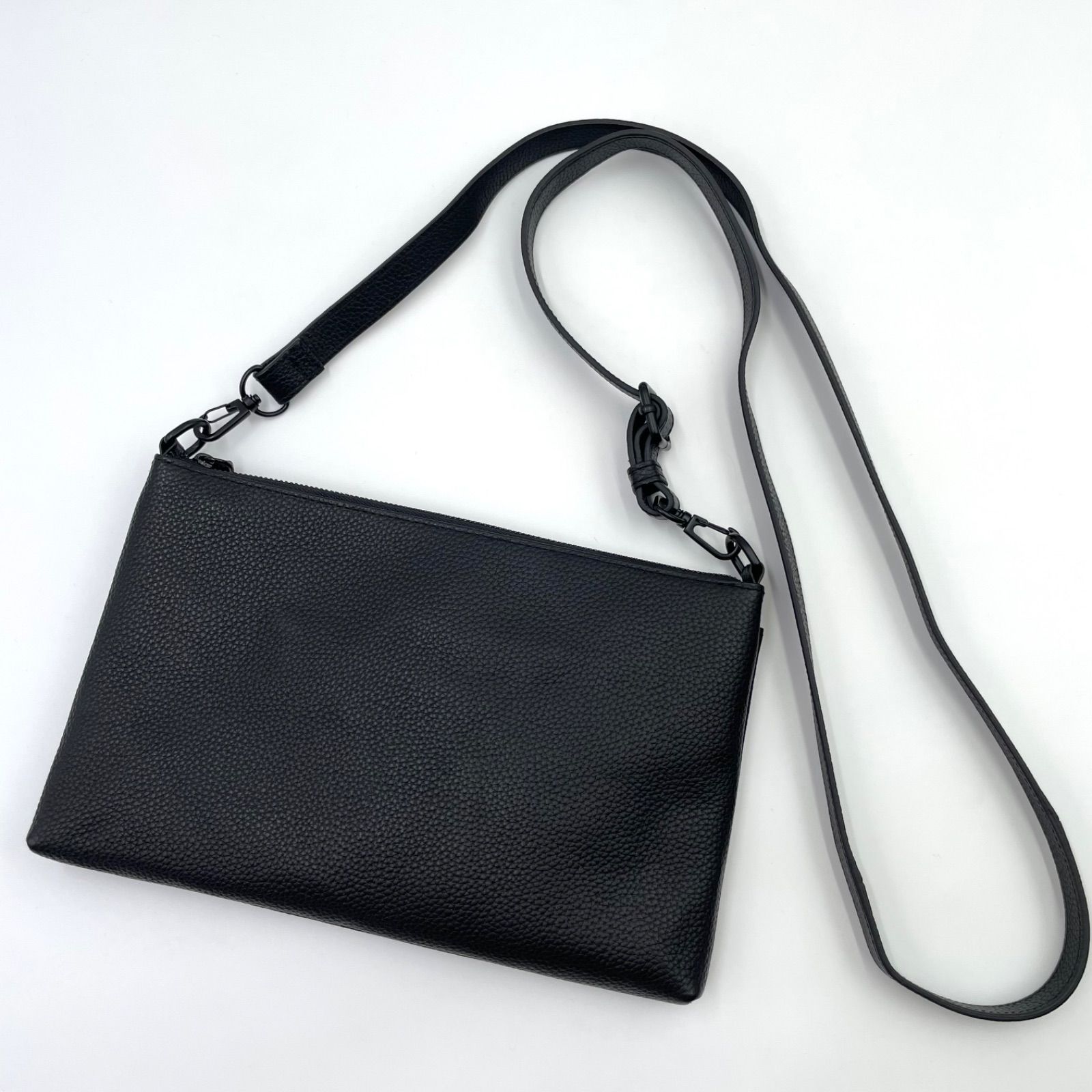 未使用級✨BLUE SINCERE ブルーシンシア サコッシュ ショルダーバッグ 5ポケット シュリンクレザー シボ革 本革 ブラック 黒