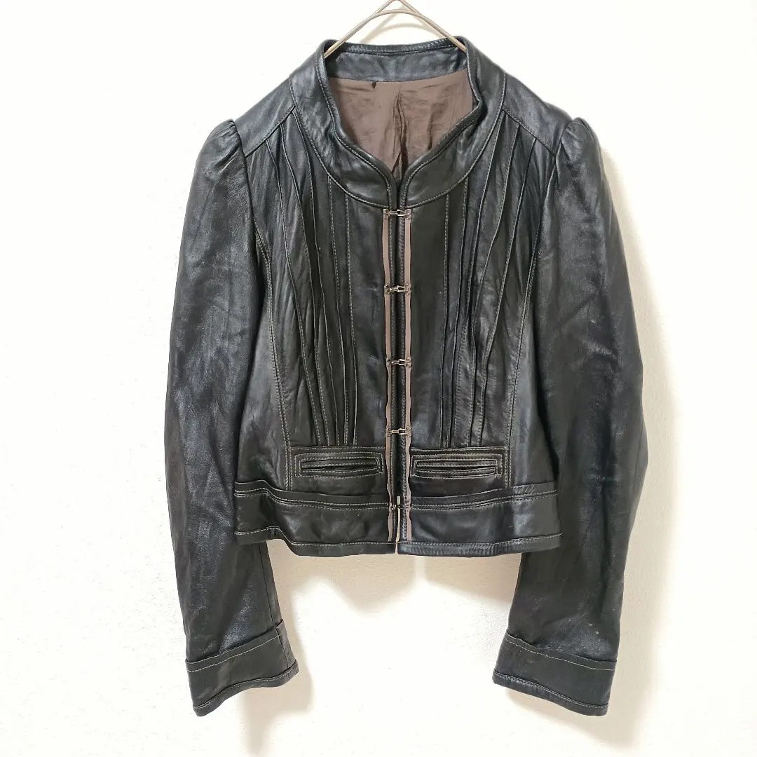 ラデュレ 黒 レザーショートジャケット ライダース サイズ9 ホック留め