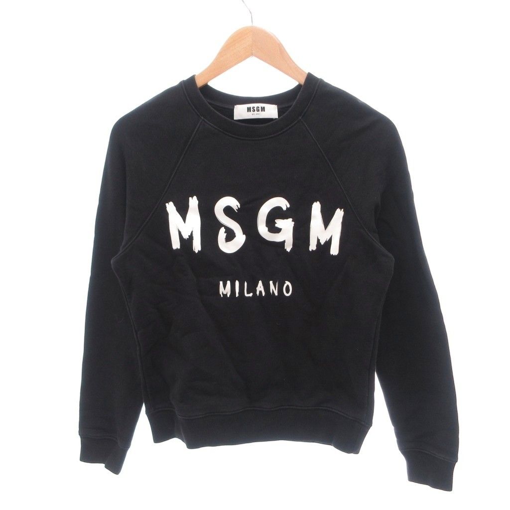 エムエスジーエム MSGM 美品 スウェット トレーナー XS 黒 ブラック 長袖 クルーネック ロゴプリント /SJ ■ECA002