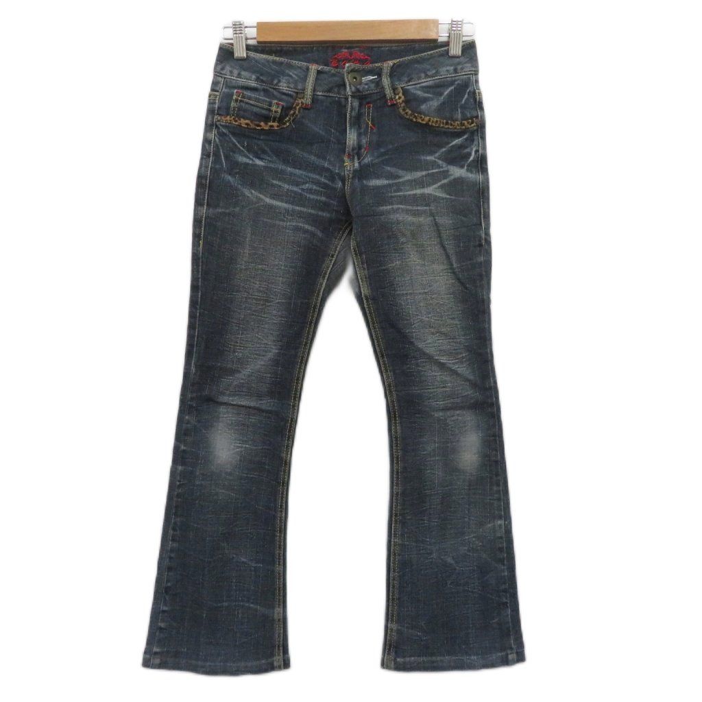 ビーシービージーマックスアズリア BCBGMAXAZRIA デニムパンツ ジーンズ フレアパンツ ロング丈 61 紺 ネイビー ウォッシュ加工 /HO44 ■ECB002