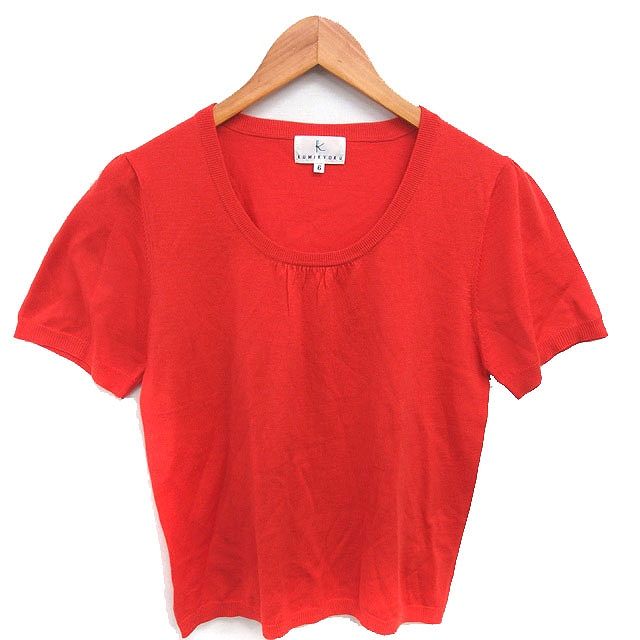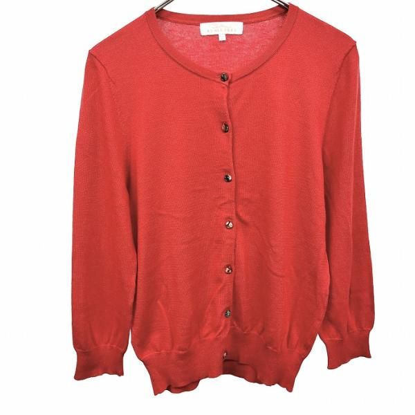 古着 KUMIKYOKU 組曲 薄手 ニット 丸首カーディガン くるみボタン 無地 7部袖 綿×アクリル 2(B81-85/T158-164) レッド系 赤系 レディース