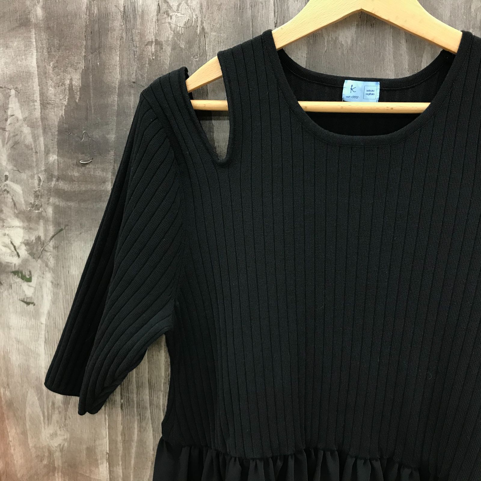 173◯クミキョク 半袖ハイネックニット 黒 M