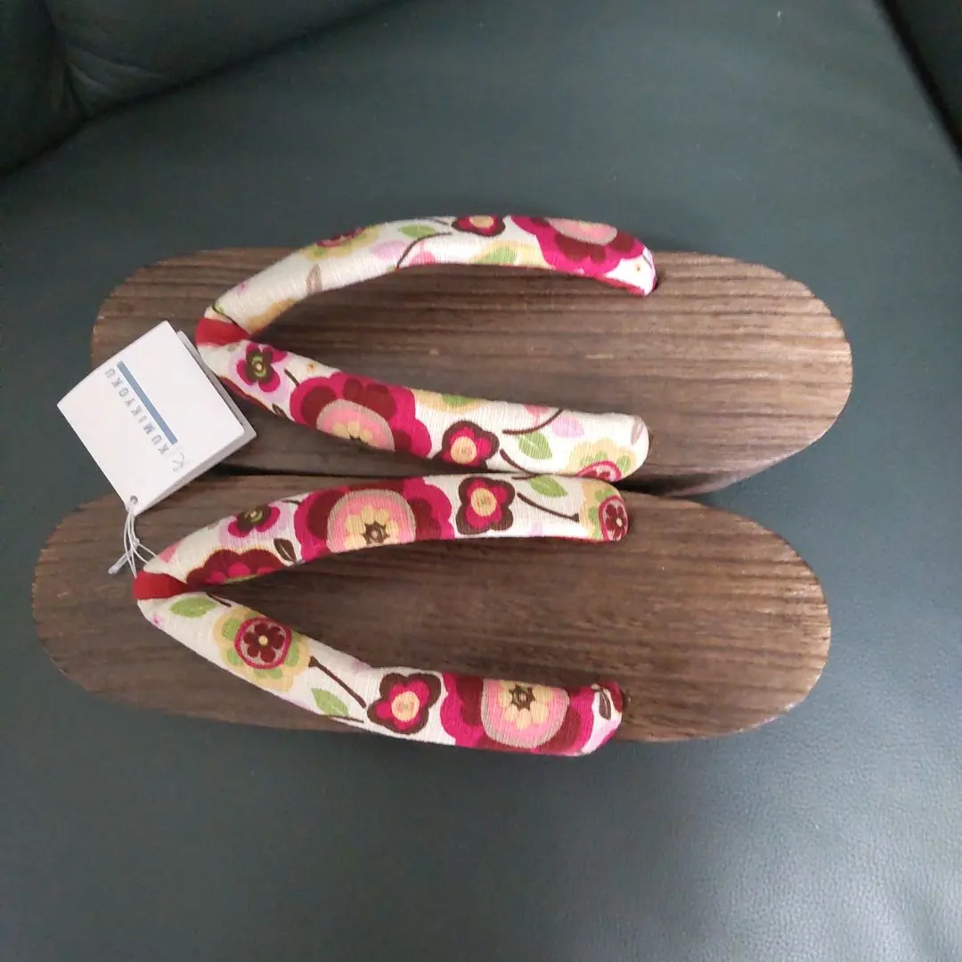 オンワード 組曲 新品 タグ付 総桐 花柄鼻緒 Lサイズ 下駄
