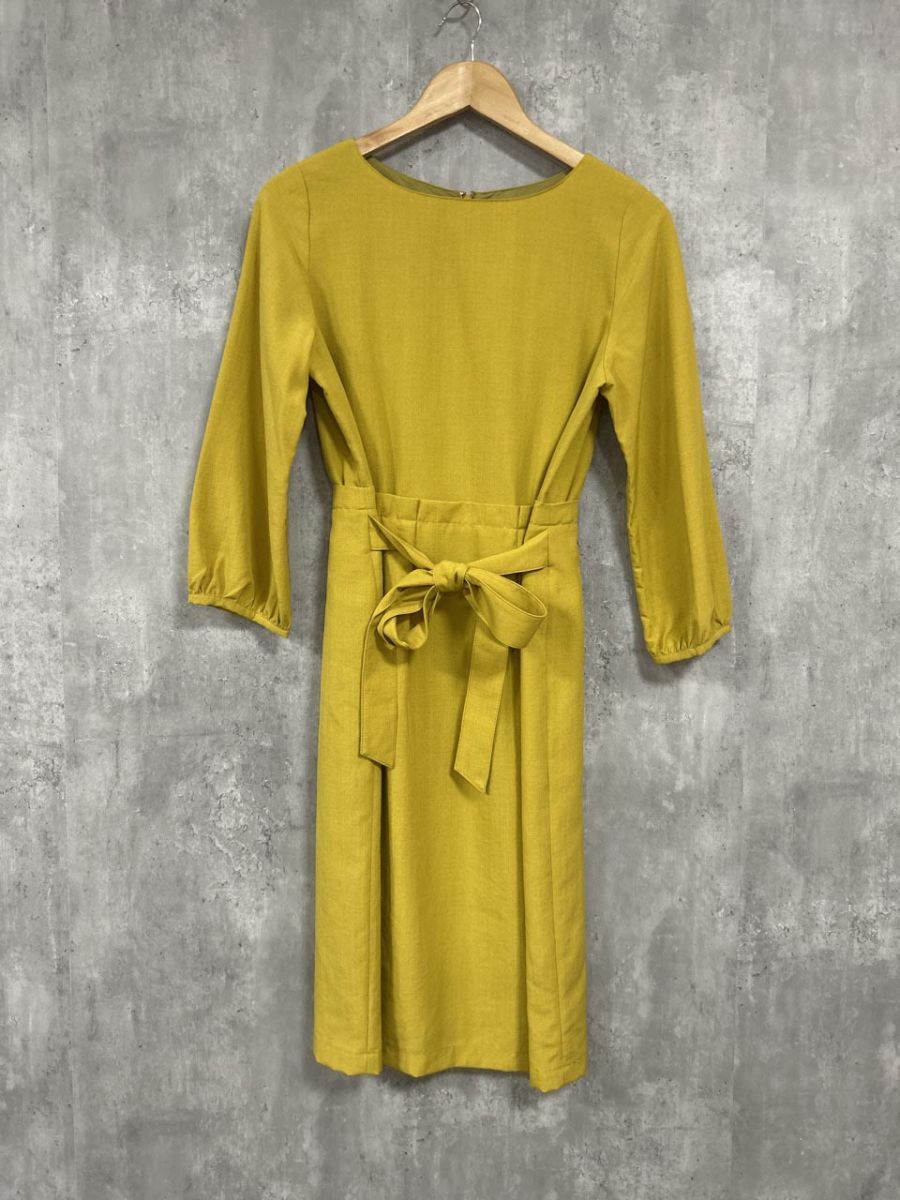 スープ ワンピース チェック柄 七分袖 リボン 膝丈 M