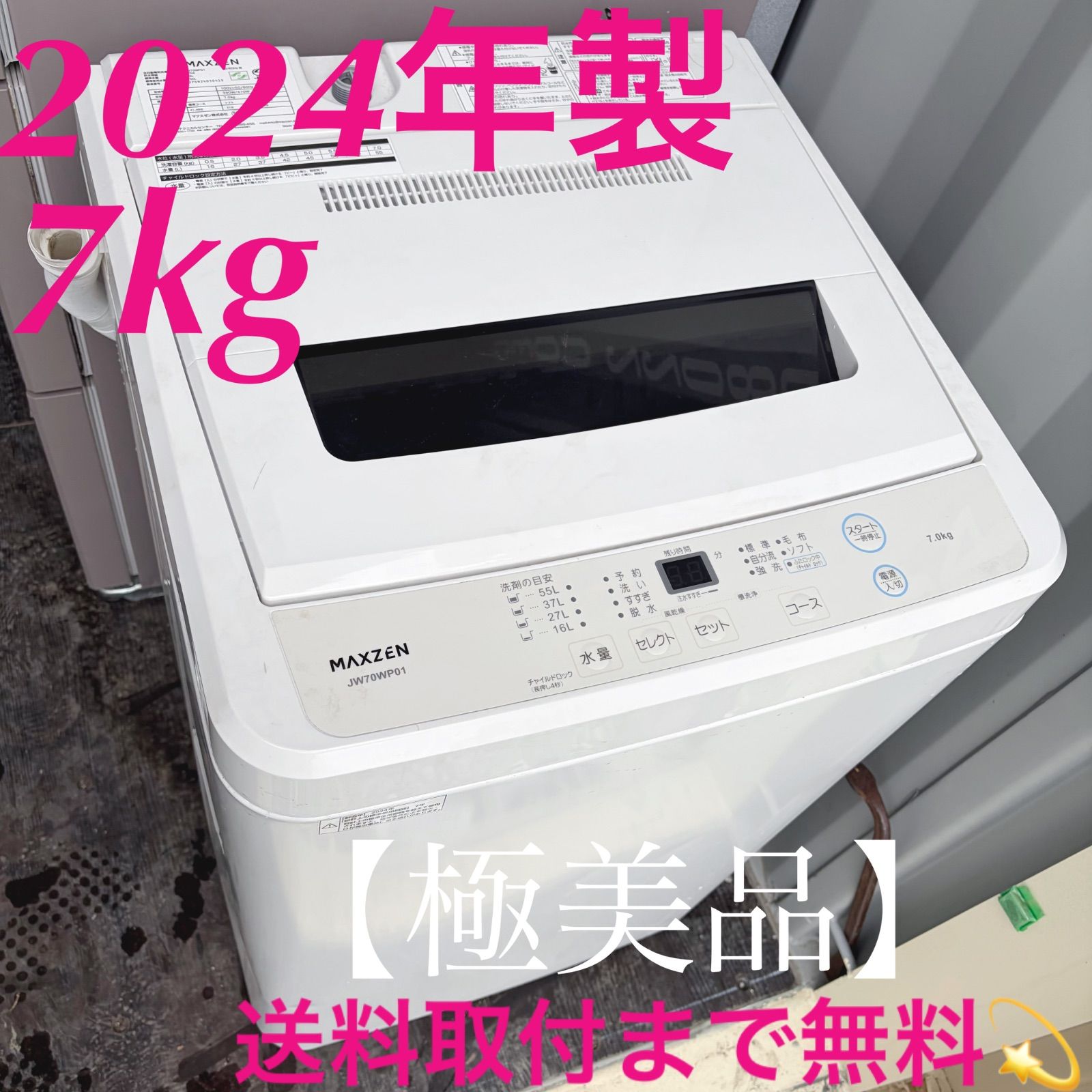 MAXZEN 縦型洗濯機 7kg ホワイト