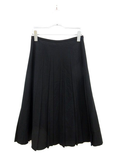 クランデュイユ KLEIN D'OEIL スカート プリーツ ミモレ ウール 38 黒 ブラック /YT