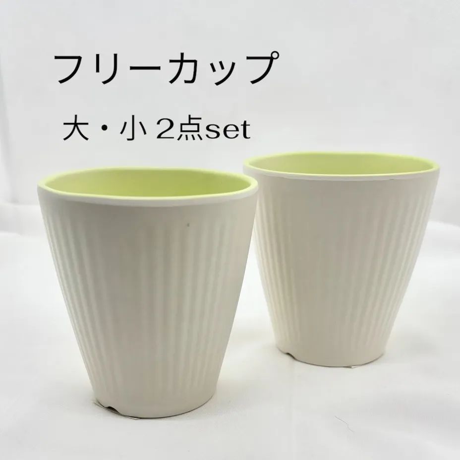 スマートメラミン フリーカップ 大・小 2点セット クリーム/グリーン湯呑み コップ タンブラー 湯のみ お茶 お冷 ルームカップ