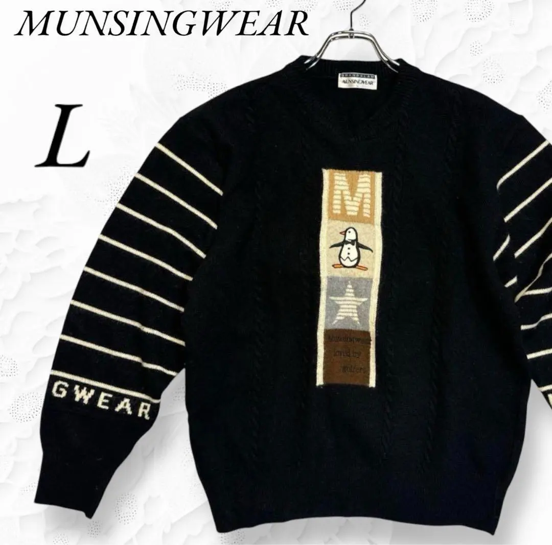 マンシングウェア セーター ニット 長袖 L ブラック 黒 シンプル カジュアル