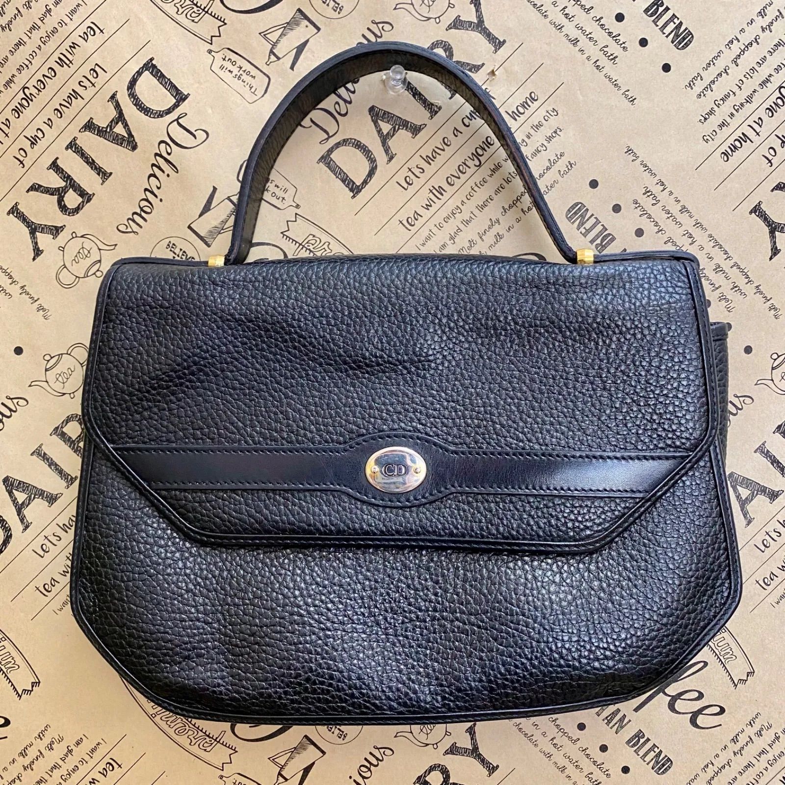 ディオール ハンドバッグ 革 黒 オールド フォーマル FZ28