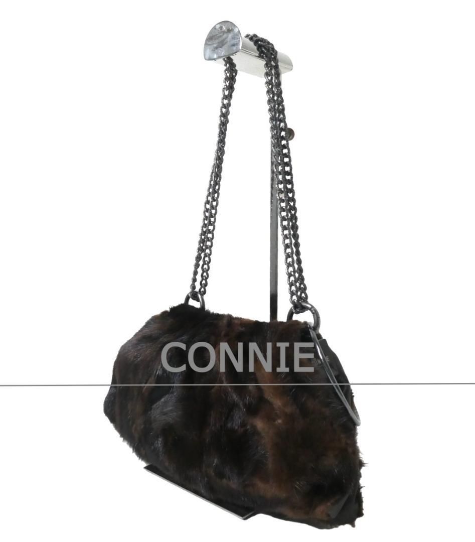 CONNIE コニー ハンドバッグ ショルダーバッグ ファー レザー 2WAY チェーンショルダー ブラウン レディース