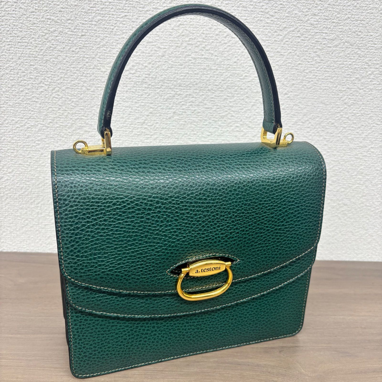 (s)a.testoni ア・テストーニ ダブルフラップハンドバッグ 緑 グリーン レディース /0405