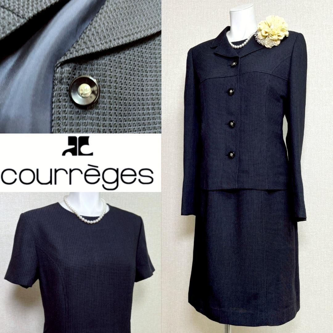 Courrèges 古着 ツイード クロップ丈ジャケット リボンワンピース