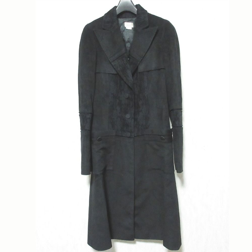 良品 ANTONIO BERARDI アントニオベラルディ 異素材切替 ロングコート SPAF-LA-8004 40 ブラック レディース 古着 中古 USED