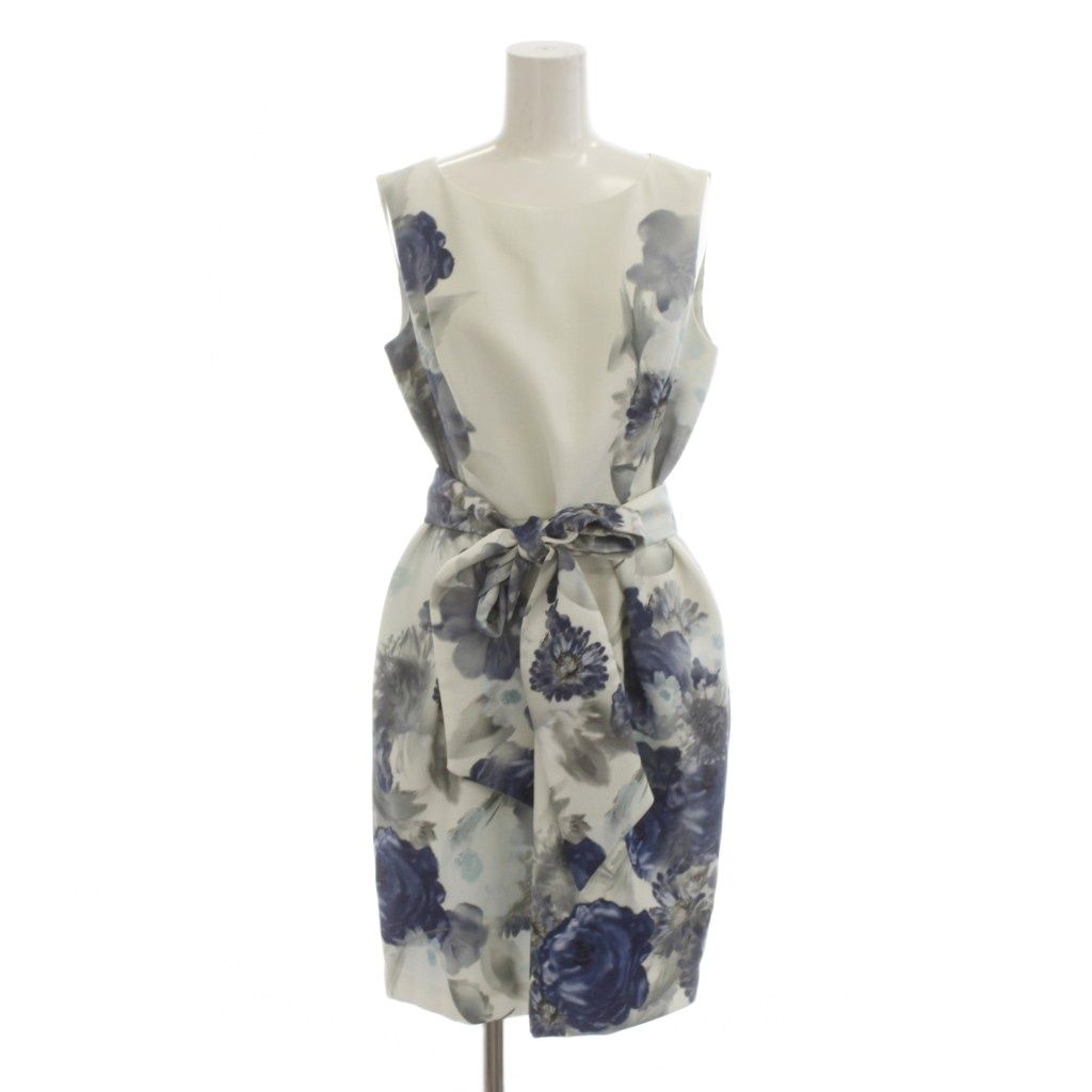 グレースコンチネンタル GRACE CONTINENTAL ワンピース 38 青 白 花柄 ノースリーブ リボンベルト /JP