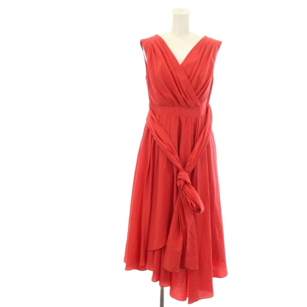 ダイアグラム グレースコンチネンタル Diagram GRACE CONTINENTAL ワンピース 36 赤 レッド Vネック ノースリーブ ウエストリボン /KG