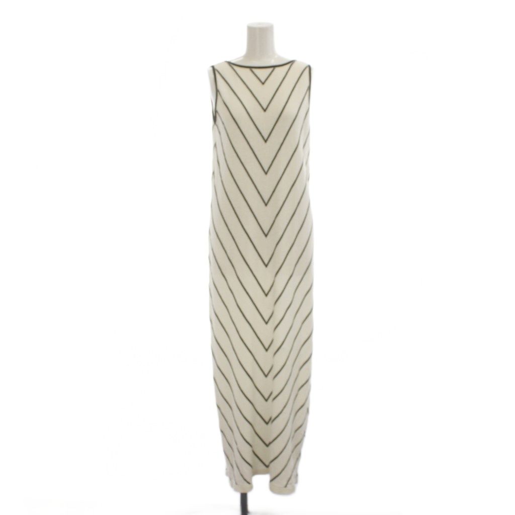 ダイアグラム グレースコンチネンタル Diagram GRACE CONTINENTAL ワンピース 麻 36 白 V字ライン柄 ノースリーブ ボートネック /JP
