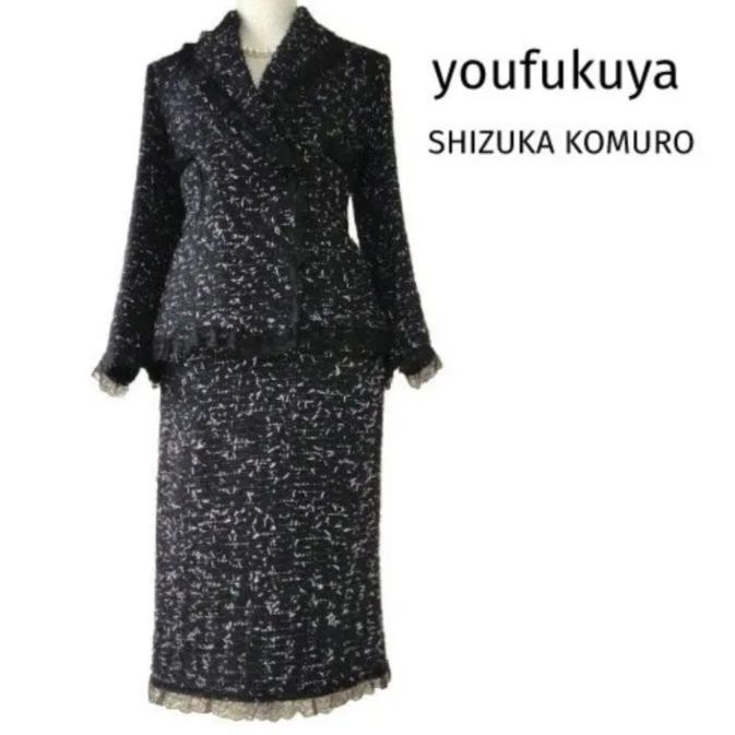 未使用に近い 高級洋服屋 シヅカコムロ レースフリル 素敵なセットアップ 黒 9号