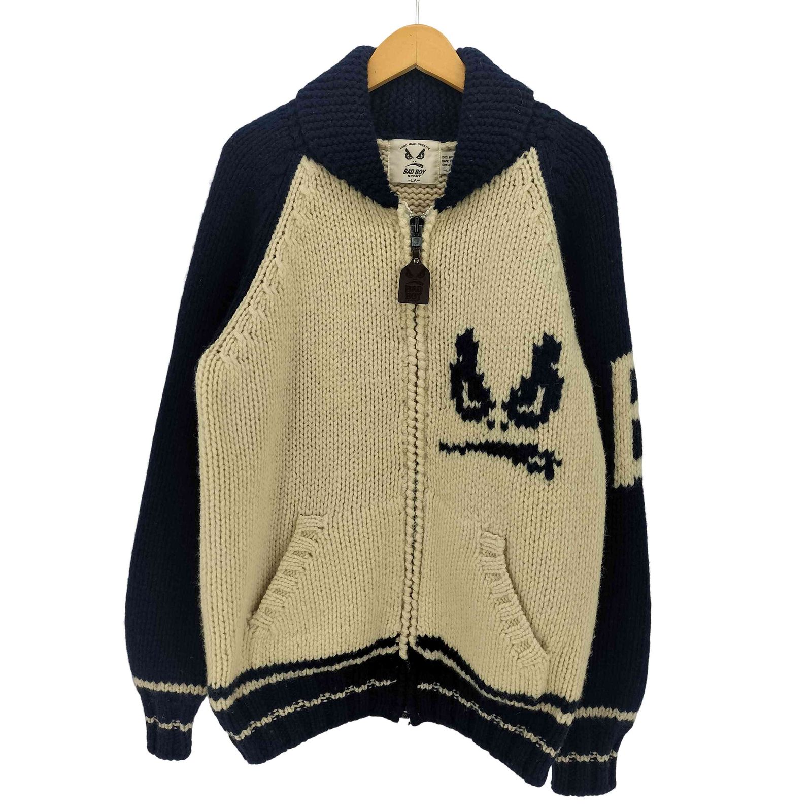バッドボーイ BADBOY 90-00S ロゴ刻印 レザーパッチ カウチンニット メンズ JPN:L