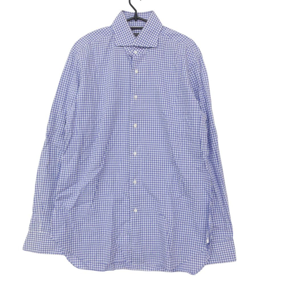 BARBA バルバ 長袖シャツ ギンガムチェック コットン ホリゾンタルカラー トップス 8ボタン ブルー 17/43【XL】 メンズ 【中古】