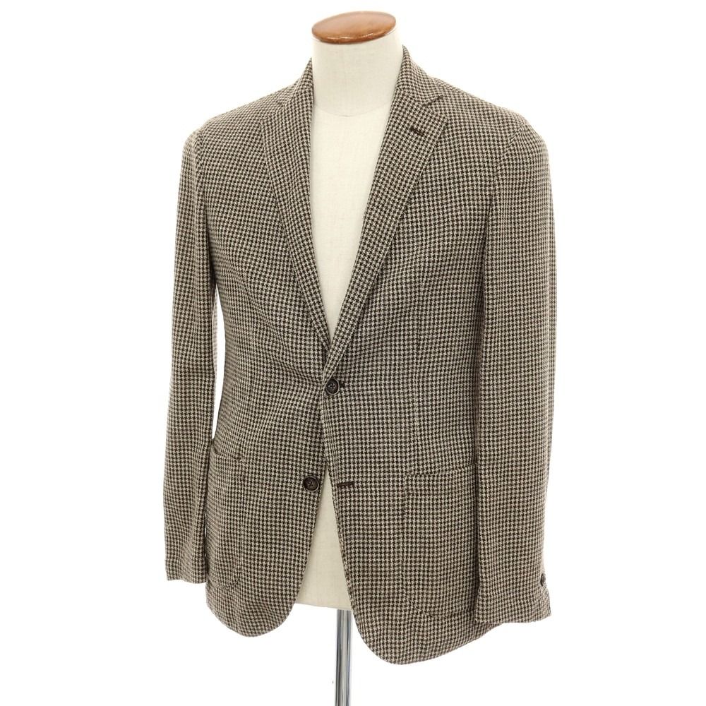 【中古】バルバ BARBA CAMICIA ウールシルクナイロンリネン チェック 2B カジュアルジャケット ブラウン【サイズ46】【メンズ】